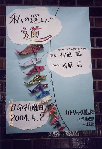 5月2日(日)召命祈願日に伊藤助祭(来年叙階予定) と高原師(修道者をめざしている)をお迎えして召命 祈願日の集いを行いました。お二人とも私は若くない からと謙遜されていましたが十分お若いですし、社会 経験を十分積まれており良い司祭、ブラザーになって 活躍していただけるものと期待しています。 伊藤助祭は今後研修を積んだ後、司祭になり、沖縄 教区の司祭になる、高原師は、介護関連のブラザーに なりたいとのことでお二人のためにお祈りしたいと思い ます。(参加者 Sより)